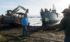 On a recent Monday morning, a crew stood on the banks of Humboldt Bay and watched with bated breath as a rickety, 200-ton bundle of history and environmental risk was...