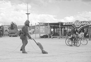 Muddy Waters' coffee roaster J.T., sporting a new mohawk, was immediately accepted as a native, but the rest of us were conspicuous in our normalcy. We passed several old motorized living room couches with wheels attached for cruising enjoyment. And yes, there were flying saucers, people wearing nothing but paint, and several attendees dressed in full leather armor. Soon we learned it was impossible to be an outcast -- everyone fits in.
