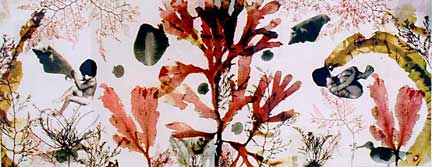 photography programs housed in an Art Left: Artwork by Ellen Land-Weber Ellen Land-Weber began teaching photography at HSU in 1974 and just retired in May of this year. Upon her retirement, she donated several of her works to the collection. The pieces included in this show were originally exhibited in a group show at the Los Angeles Museum of Art in 1987 called Photography and Art: Interactions since 1946 (there's a book by the same name in the HSU Library about the show, if you want to know more). Ellen told me that the pieces were created on the world's first color copy machine, which she purchased from the 3M Company in 1975 with an NEA grant. She used the machine as a camera, placing objects directly on the machine, cutting out images and collaging them together. Also included in the show are several silkscreen prints that have rarely been exhibited. Michelle isn't sure where these pieces came from, but they were included in the show because of the growing interest in printmaking on campus. "HSU used to have a really strong printmaking department, but it hasn't been the primary focus as of late," she told me -- that is, until Sarah Whorf came on board. Sarah teaches printmaking, lithography and silkscreen, and her classes are generating an increase in interest in the printmaking processes. One goal of the permanent collection is to be an educational resource, so it made sense to showcase the work of silkscreen artists for the current printmaking students.