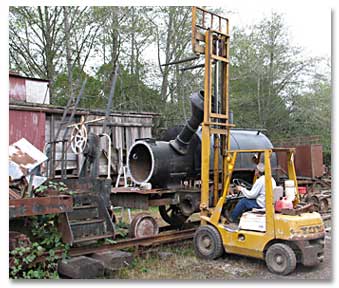 railroad engine apart. Removing the smokestack was the next step