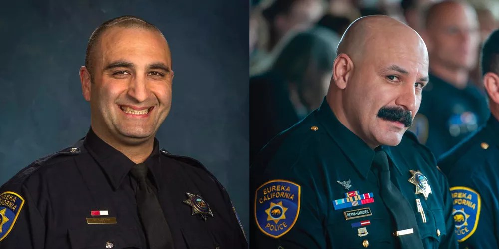 Eureka Police Department officer Mark Meftah (left) and Sgt. Rodrigo Reyna-Sanchez. Credit: Photos courtesy of city of Eureka (left) and by Mark McKenna (right)